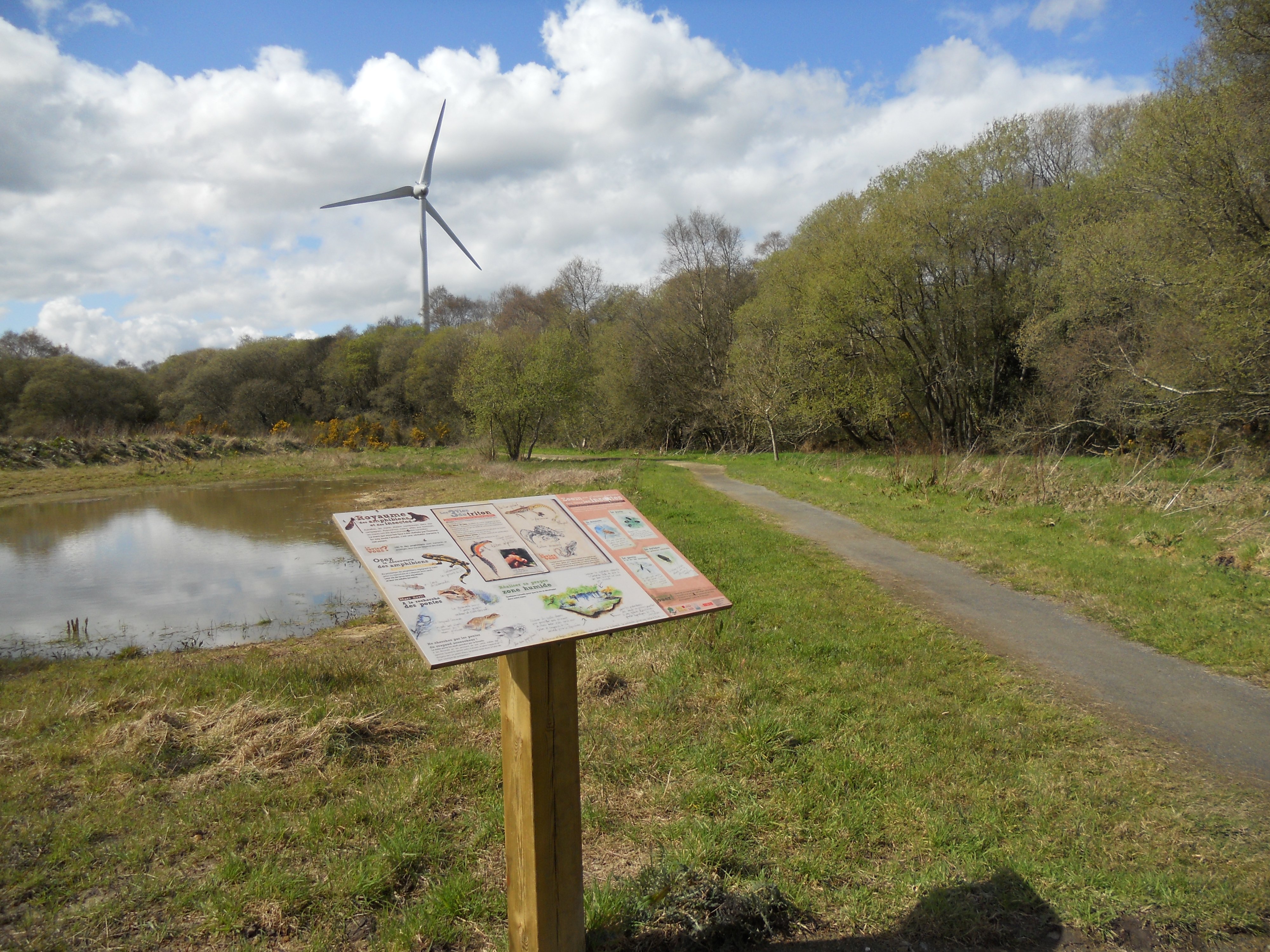 - Un sentier piétonnier agrémenté de panneaux pédagogiques borde les 3 éoliennes; très accessibles aux poussettes et personnes à mobilité réduite.